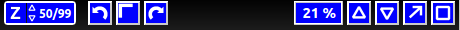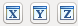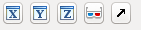 In each of the three slice views, there is an overlay dedicated to navigation at the top. The x-view has a red color, y-view has a green color and the z-view has a blue color.
